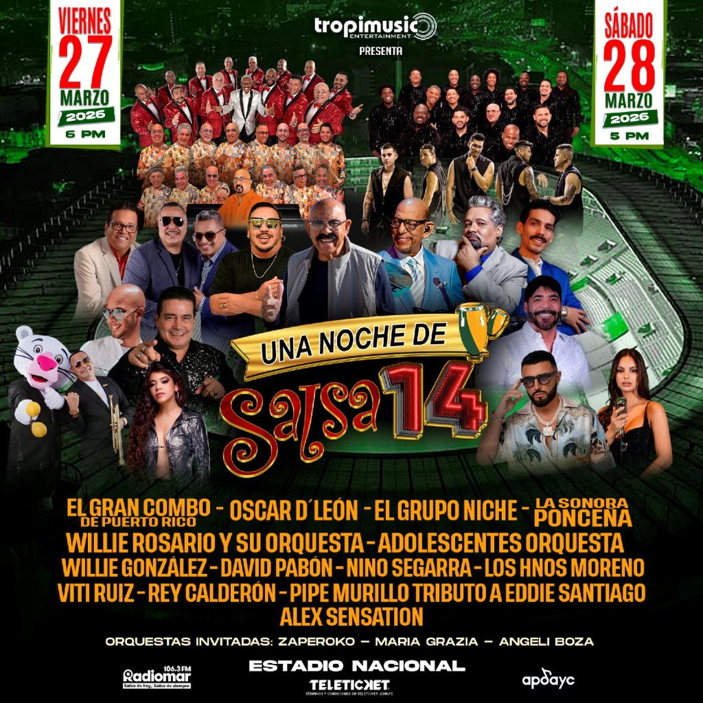 La fiebre mundial de la salsa vuelve a encender Lima con “Una Noche de Salsa 14”, que se realizará el viernes 27 de marzo y sábado 28 de marzo en el Estadio Nacional. Este espectáculo reunirá a grandes figuras internacionales como El Gran Combo de Puerto Rico, Oscar D’León, Grupo Niche, La Sonora Ponceña y Willie Rosario, entre otras leyendas del género. Sin embargo, esta edición marca un momento especial: el protagonismo del talento nacional, especialmente del Callao, que se posiciona como uno de los grandes referentes salseros de la región.
